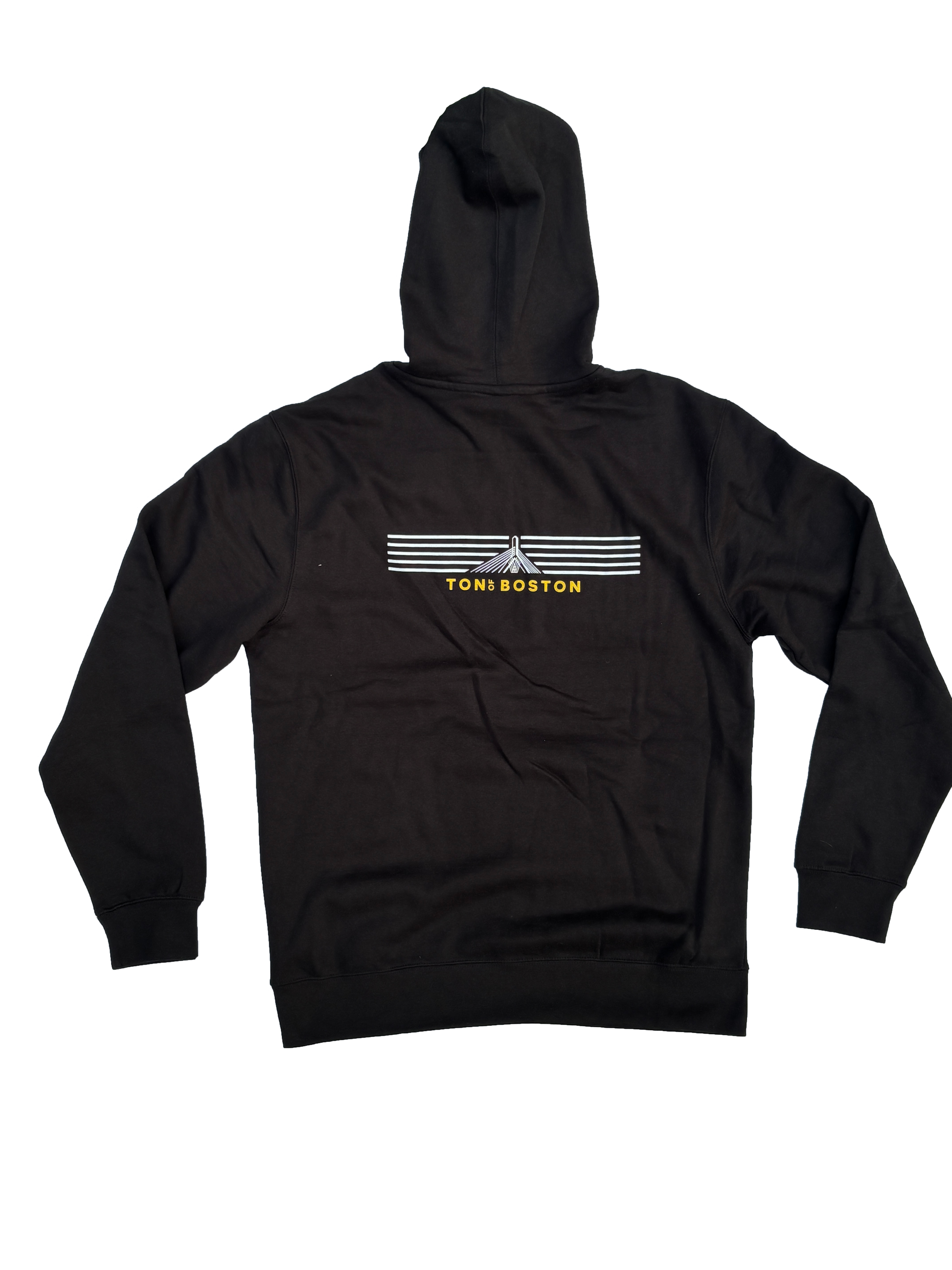 The most comfortable fleece hoodie you will wear. Embroidered on the front is our Ton of Bos "Stacked" logo and the BOS core values. On the back you have our "Zakim Flag" full version with Ton of Boston in our "Bear" color. If you don't want compliments, don't buy it.