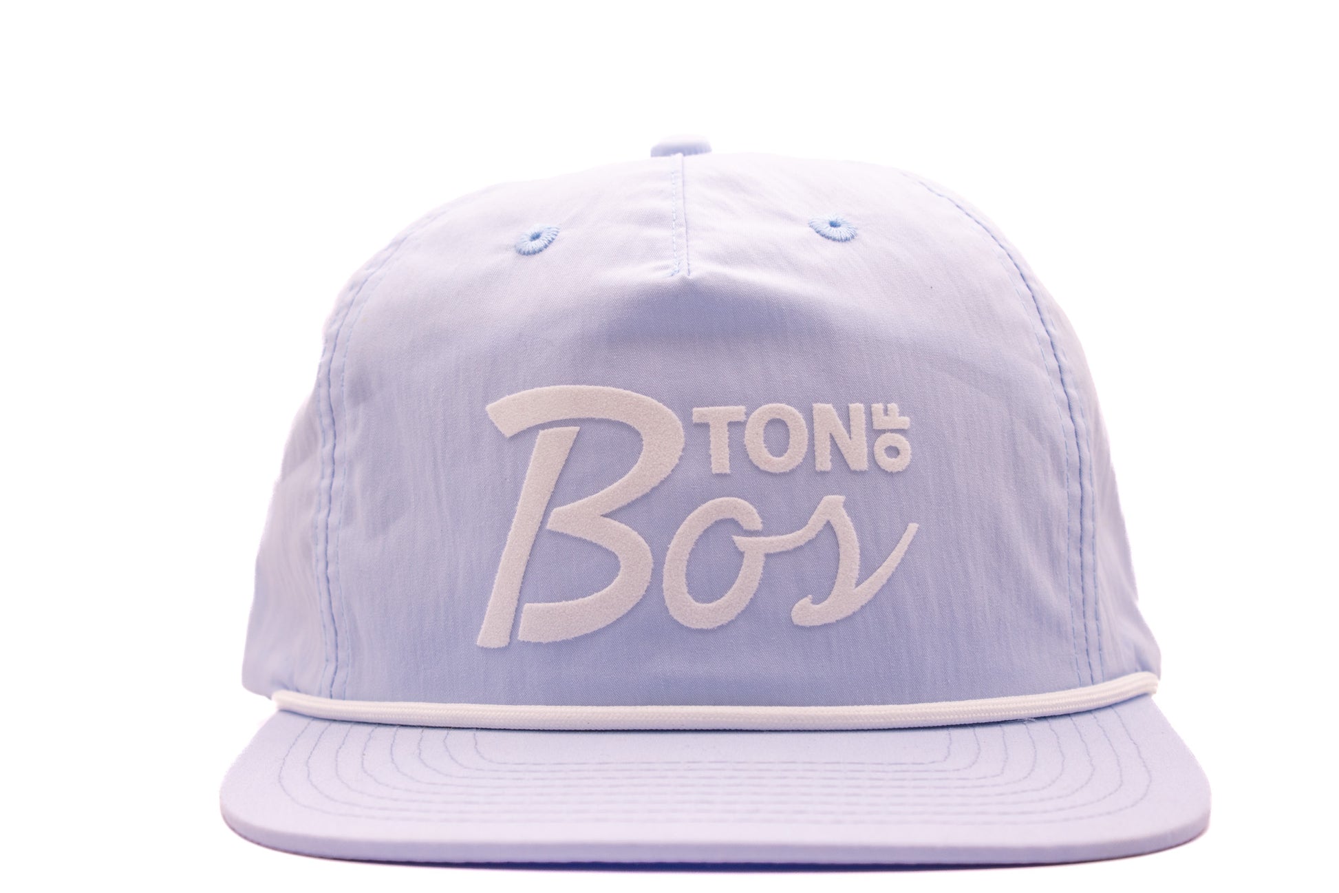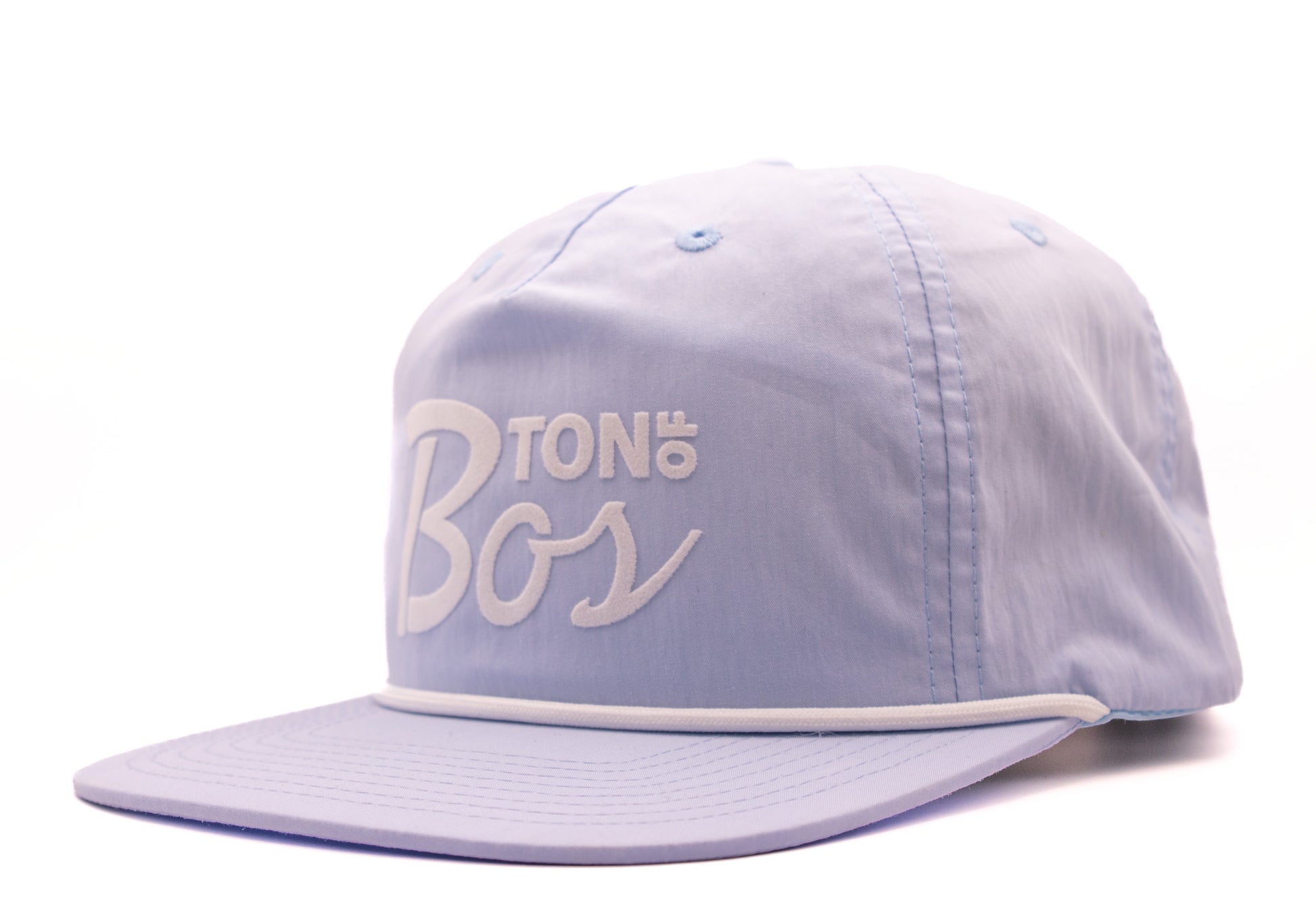 The BOS Nylon Hat Baby Blue - Nylon from front to back, with a white rope accent. We dare you to find a better fitting, higher-quality hat. You'll be looking for a while! Manufactured by hat guys, Crafted Mfg, for hat guys & gals. Features our "Ton Of Bos" 3D high-quality felt patch. If you don't want compliments on your hat game, don't buy this one!