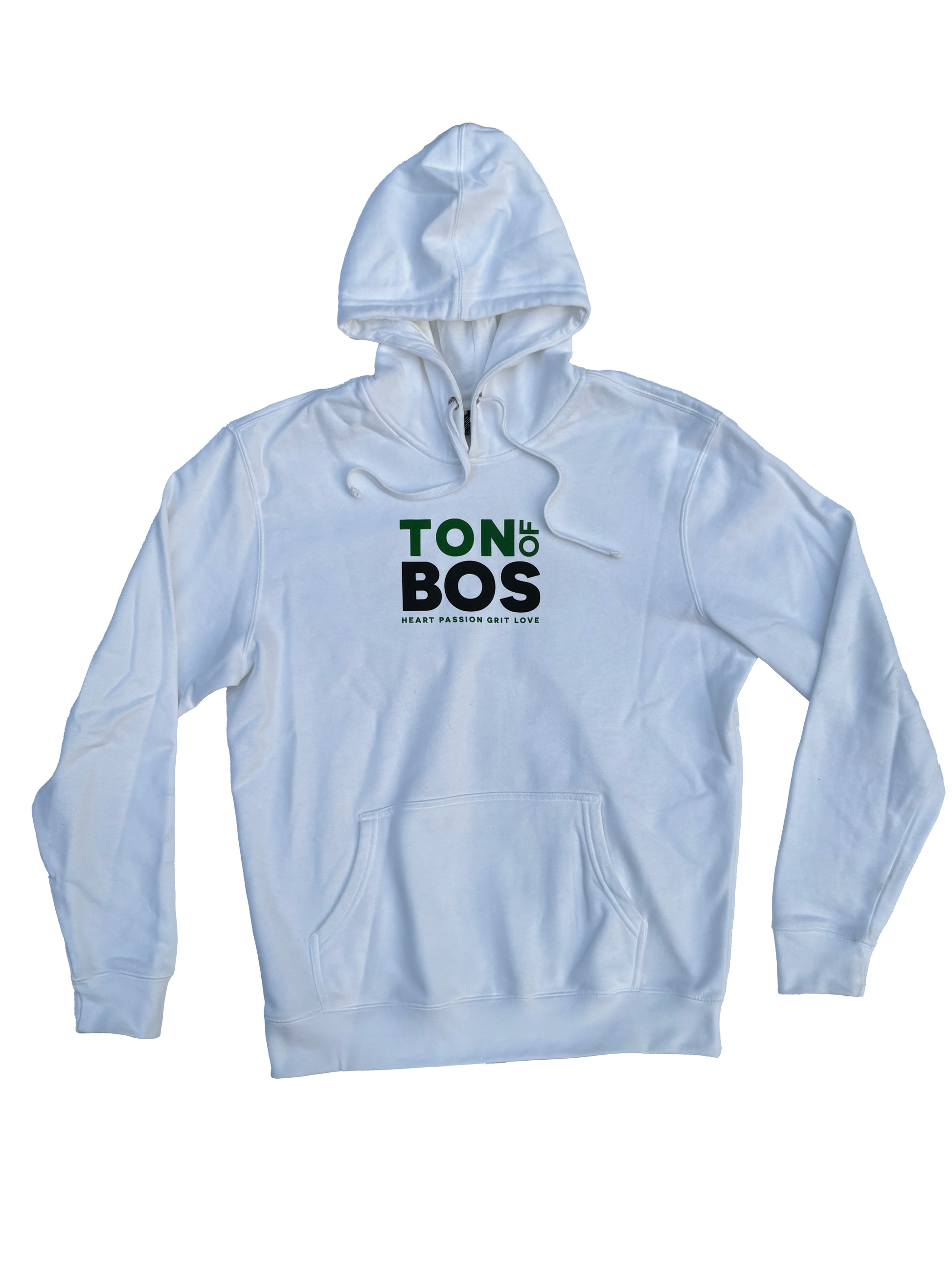 The most comfortable fleece hoodie you will wear. Embroidered on the front is our Ton of Bos "Stacked" logo and The BOS core values. On the back you have our "Zakim Flag" full version with Ton of Boston in our "Champ" color. If you don't want compliments, don't buy it.