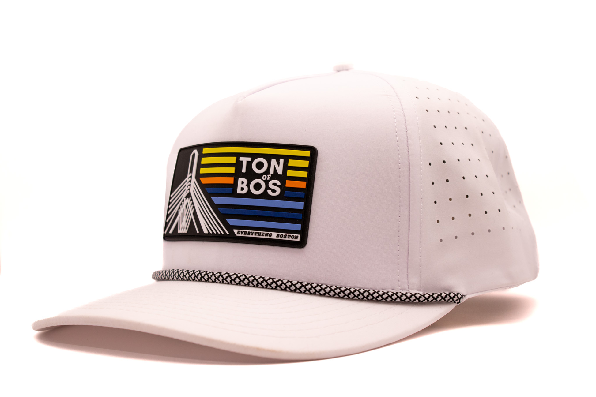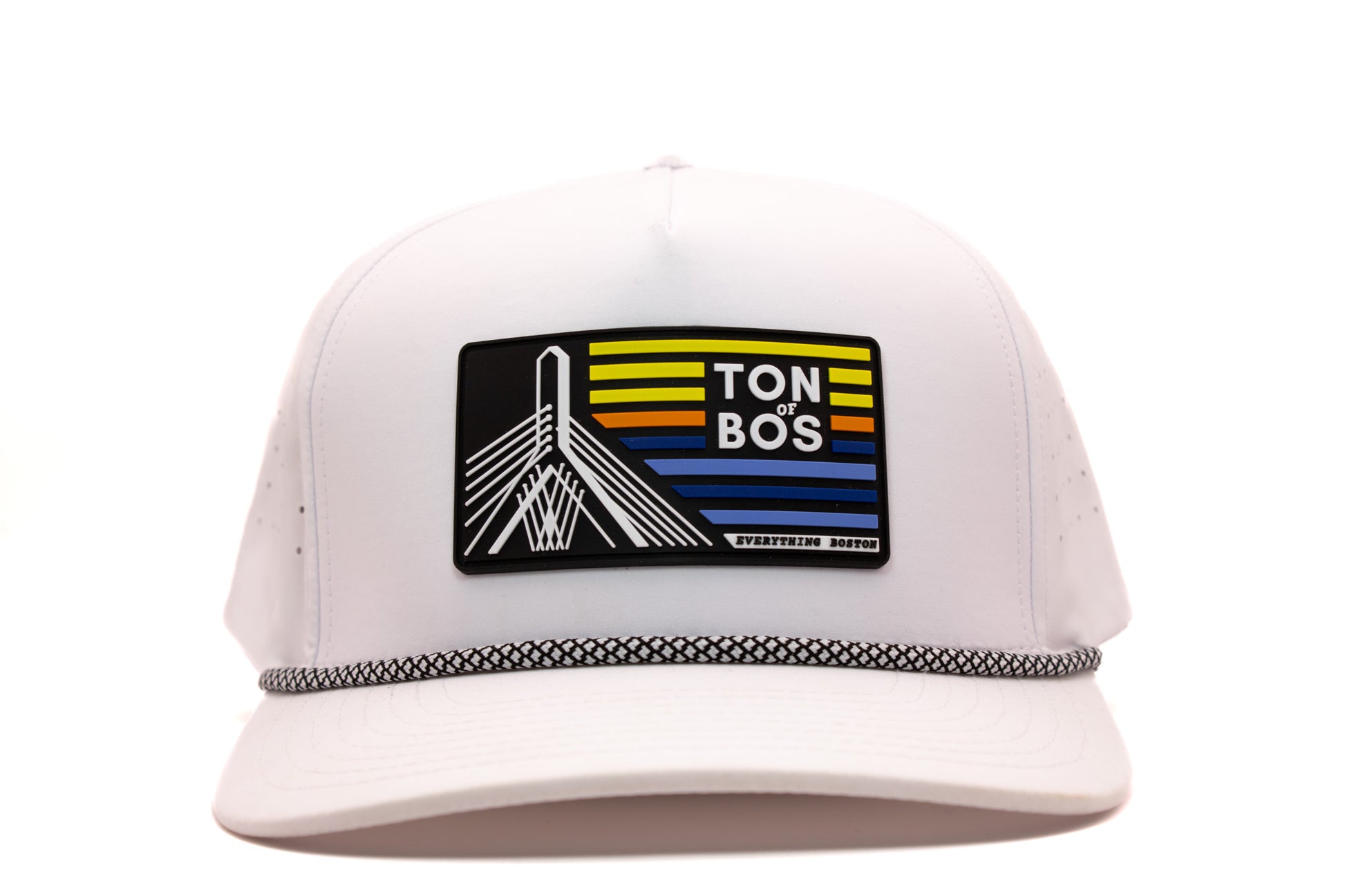 The Zakim Performance Hat White- Full canvas front/back black performance hat with air-wicking holes in the back, with a black/white rope accent. Like all of our hats, don't buy this one if you're not a hat connoisseur, as this one is for the finicky hat lover. Manufactured by true hat guys, Crafted Mfg, for true hat guys & gals! Features our Boston Zakim Flag logo patch made of unique PVC. Don't leave this bad boy lying around, someone will swipe it!